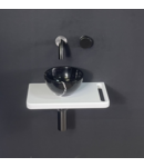 Fonteinset Lecce, natuursteen-marmer toilet waskom zwart met plank. Excl. sifon, afvoerplug, inbouw fonteinkraan.